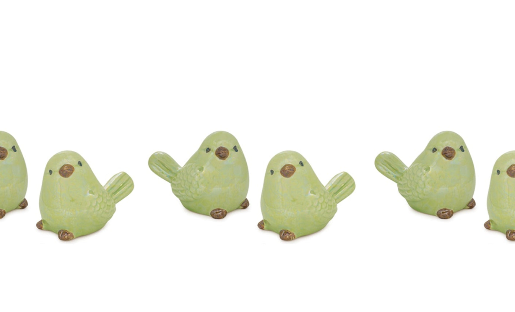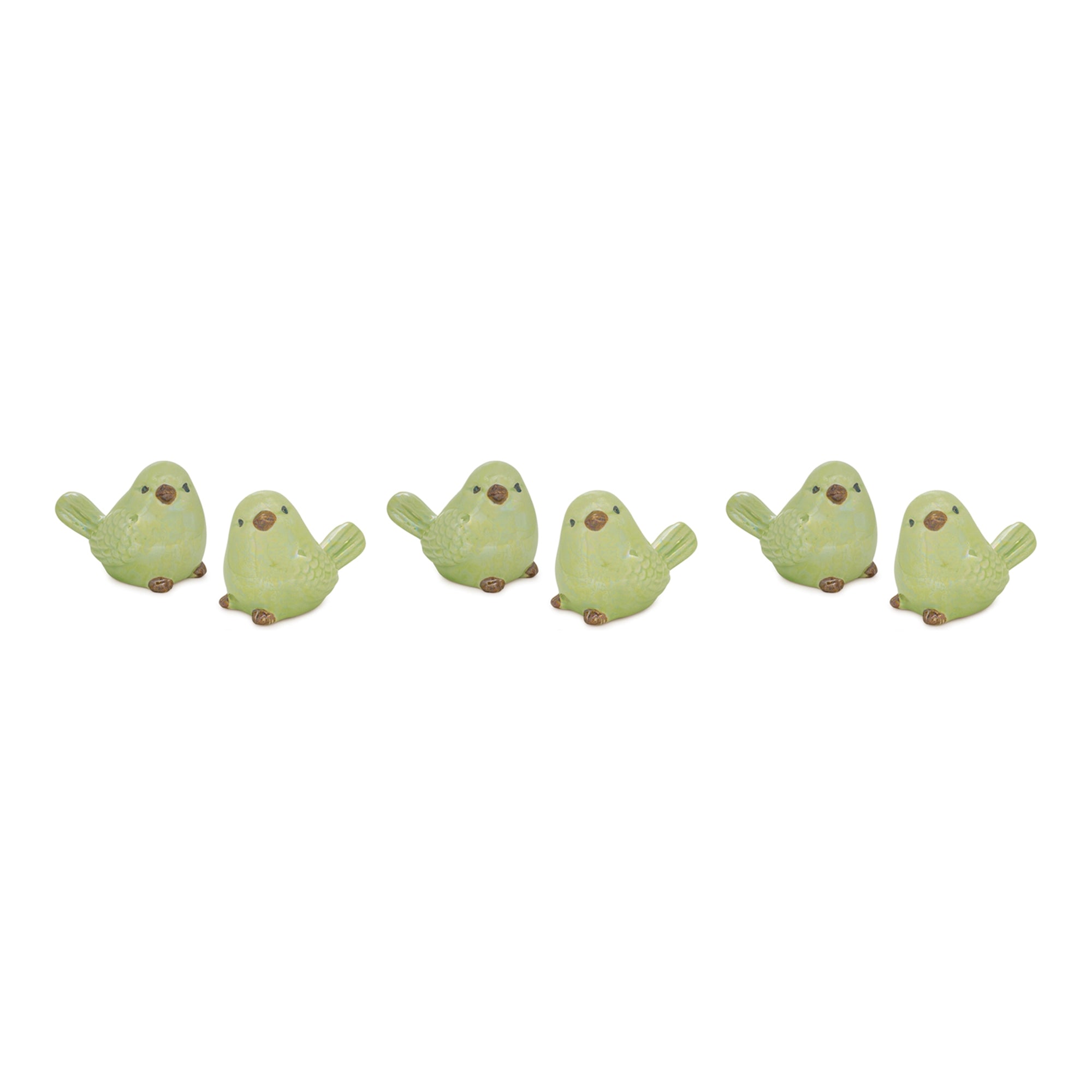 Whimsical Ceramic Bird Figurines (Set Of 6)– 3"H Green – Living Room Accent – By Melrose