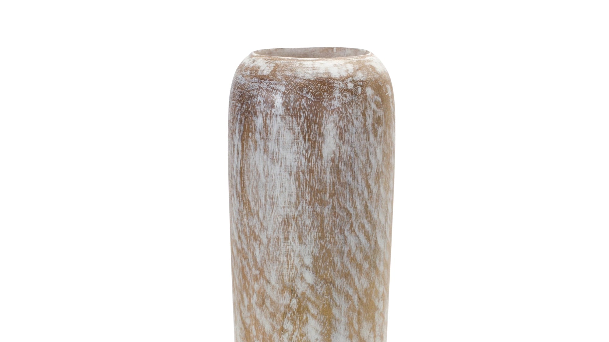 SKU - MEL-88146DSWhite Brown Wood Vase – 18.25"H Rustic Finish – Modern Farmhouse Decor