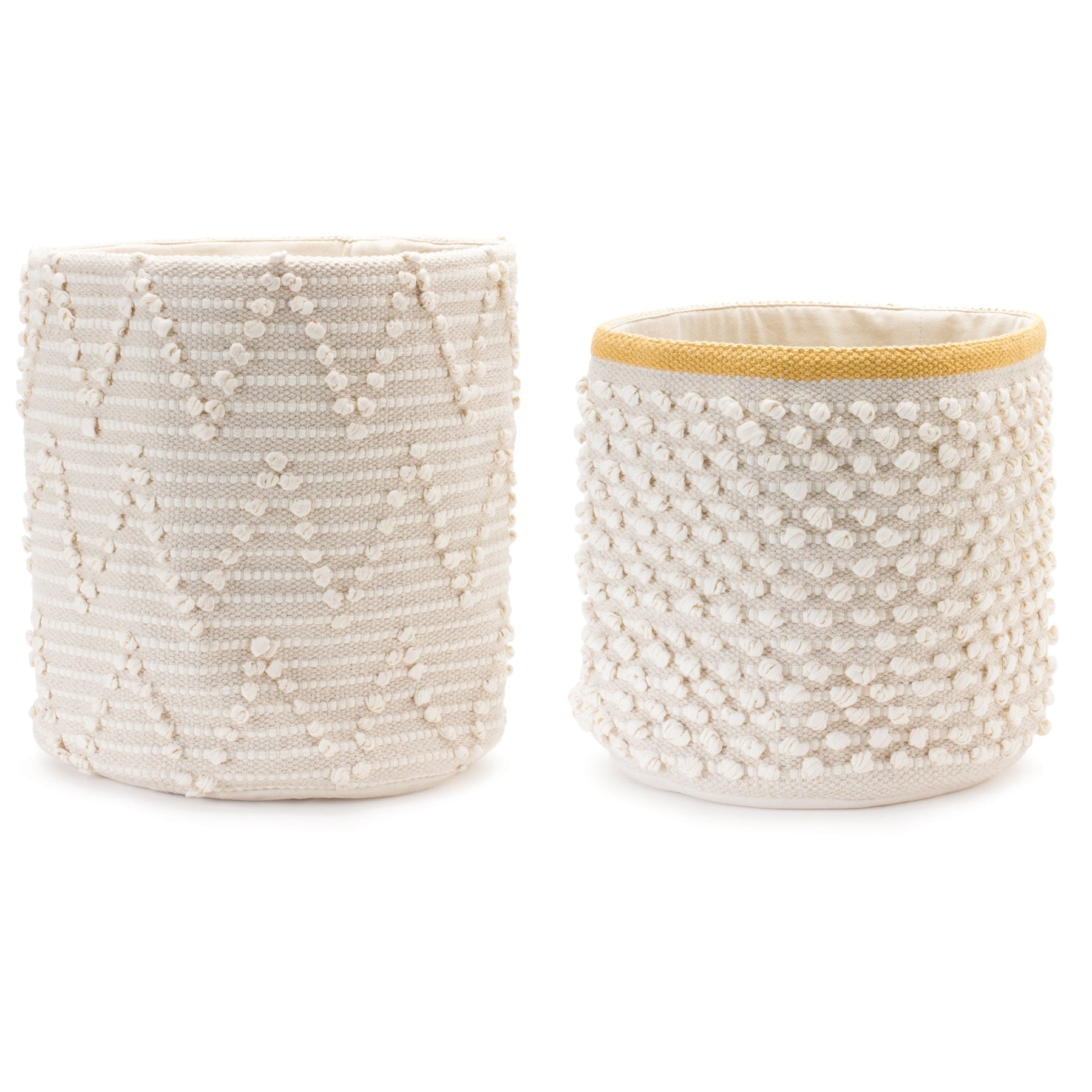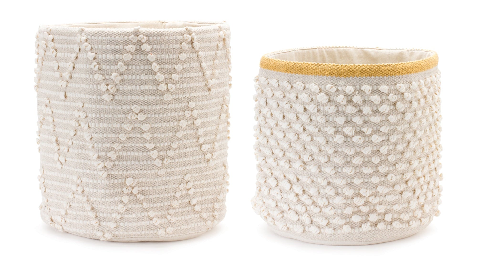White Woven Cotton Basket Set – 15.75"H Decorative Storage Baskets (Set of 2) White and Yellow Cotton Home Organization by Melrose