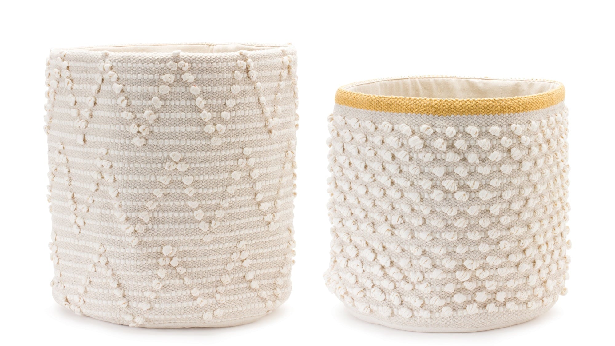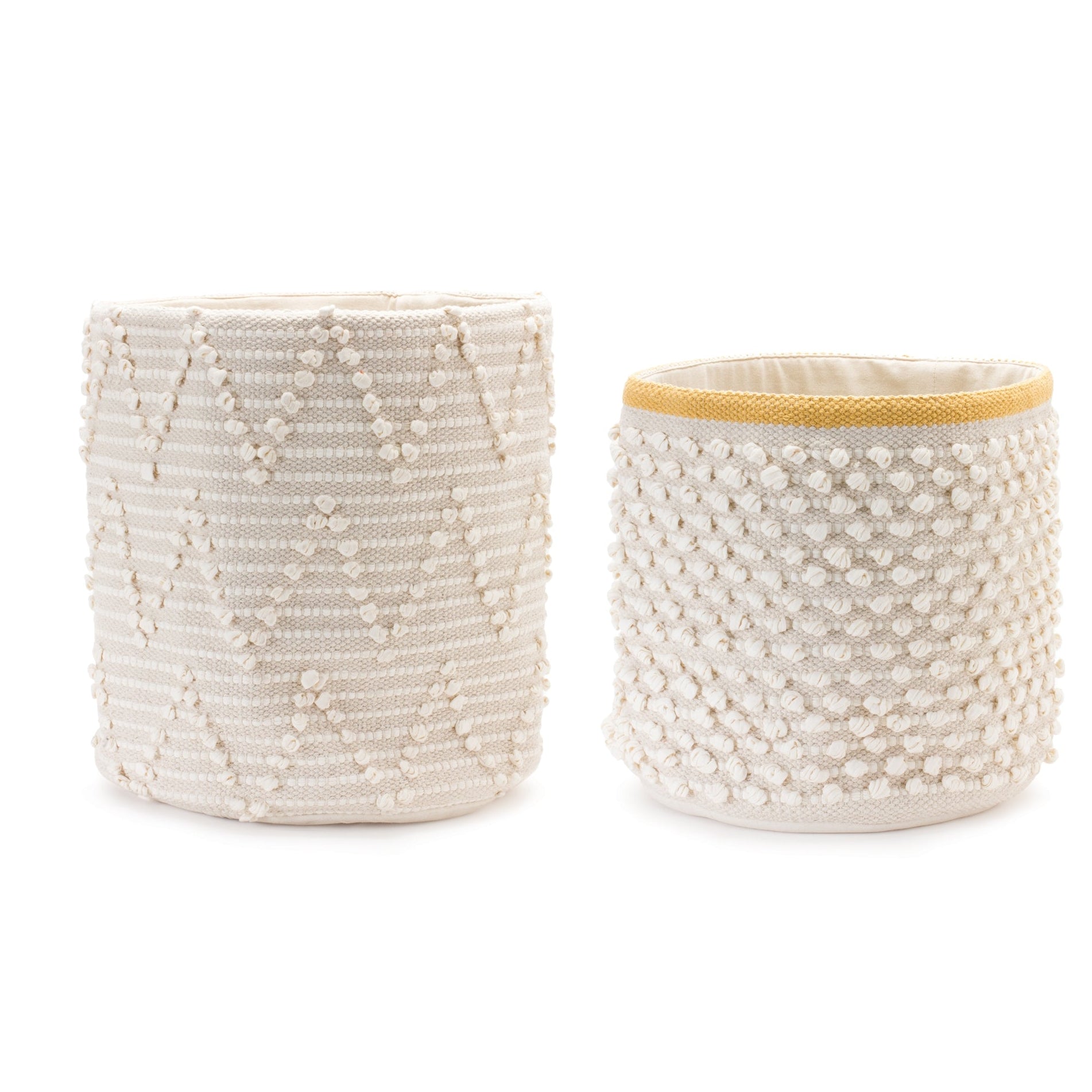 White Woven Cotton Basket Set – Decorative Storage Baskets (Set of 2) Warm White & Yellow Cotton Home Organization by Melrose