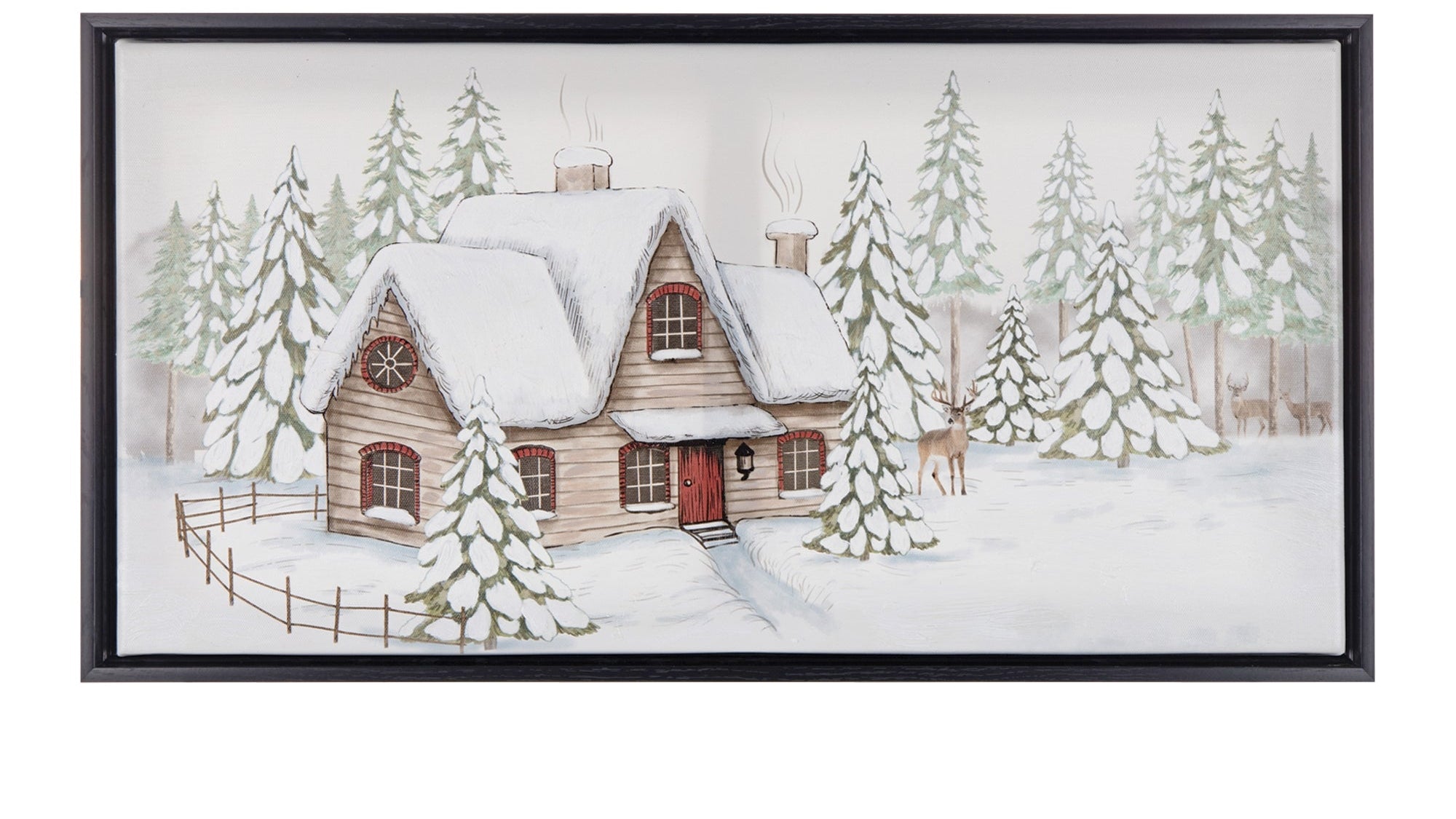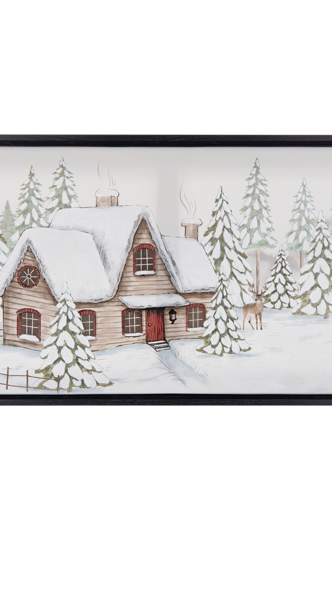 - Winter cabin artwork adds seasonal warmth and visual interest