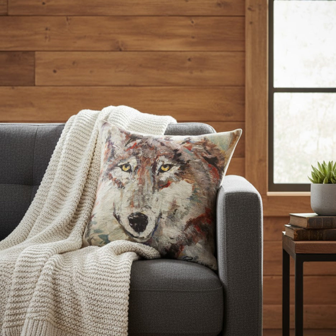 Wolf Head 18" Weather-Resistant Climaweave Pillow by Manual Woodworkers