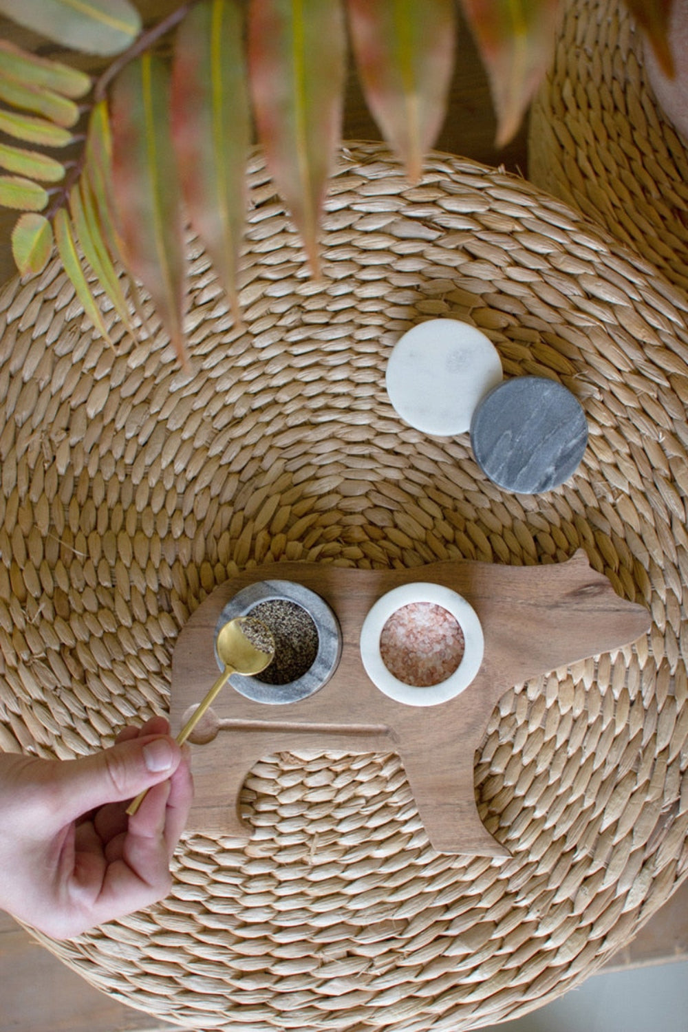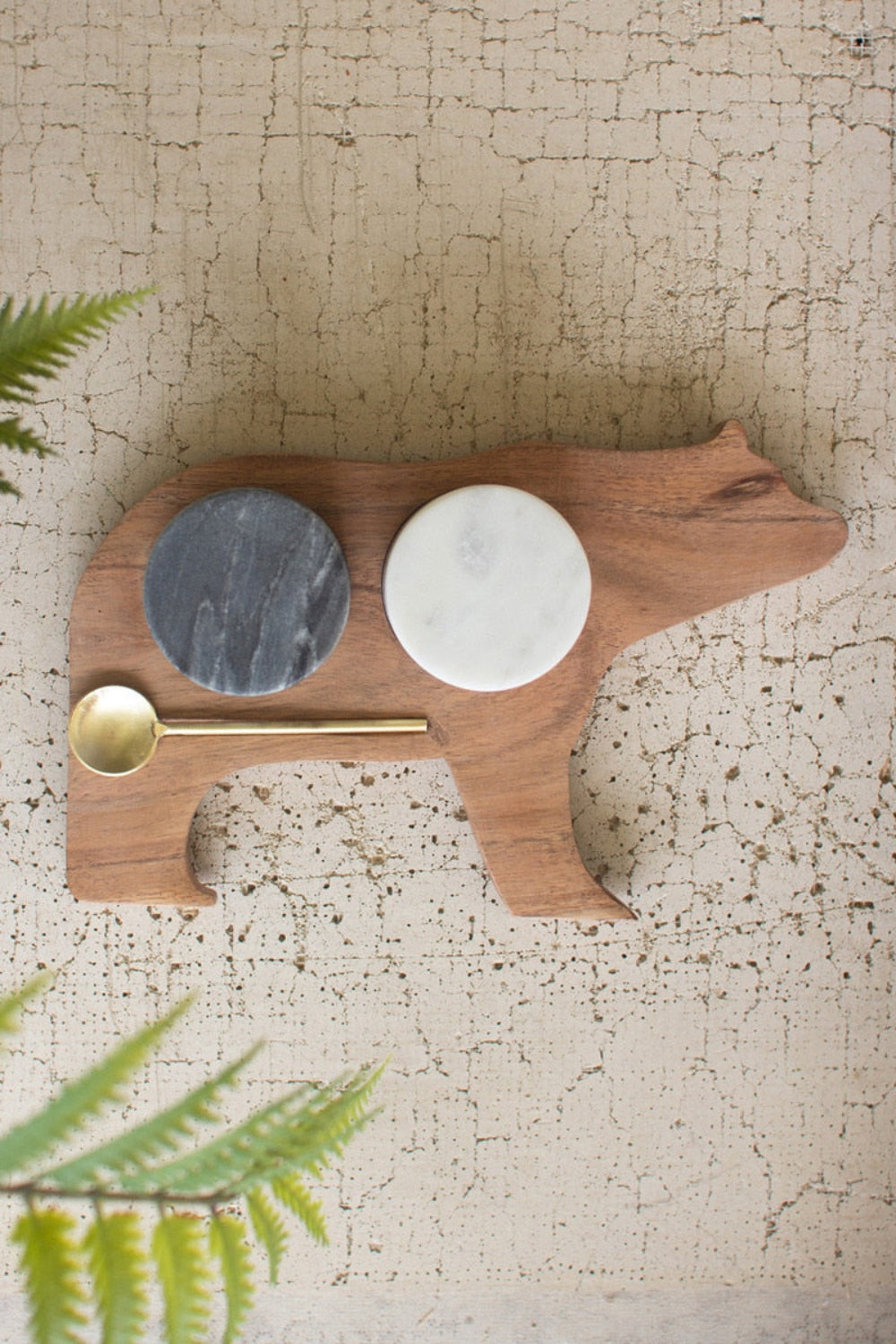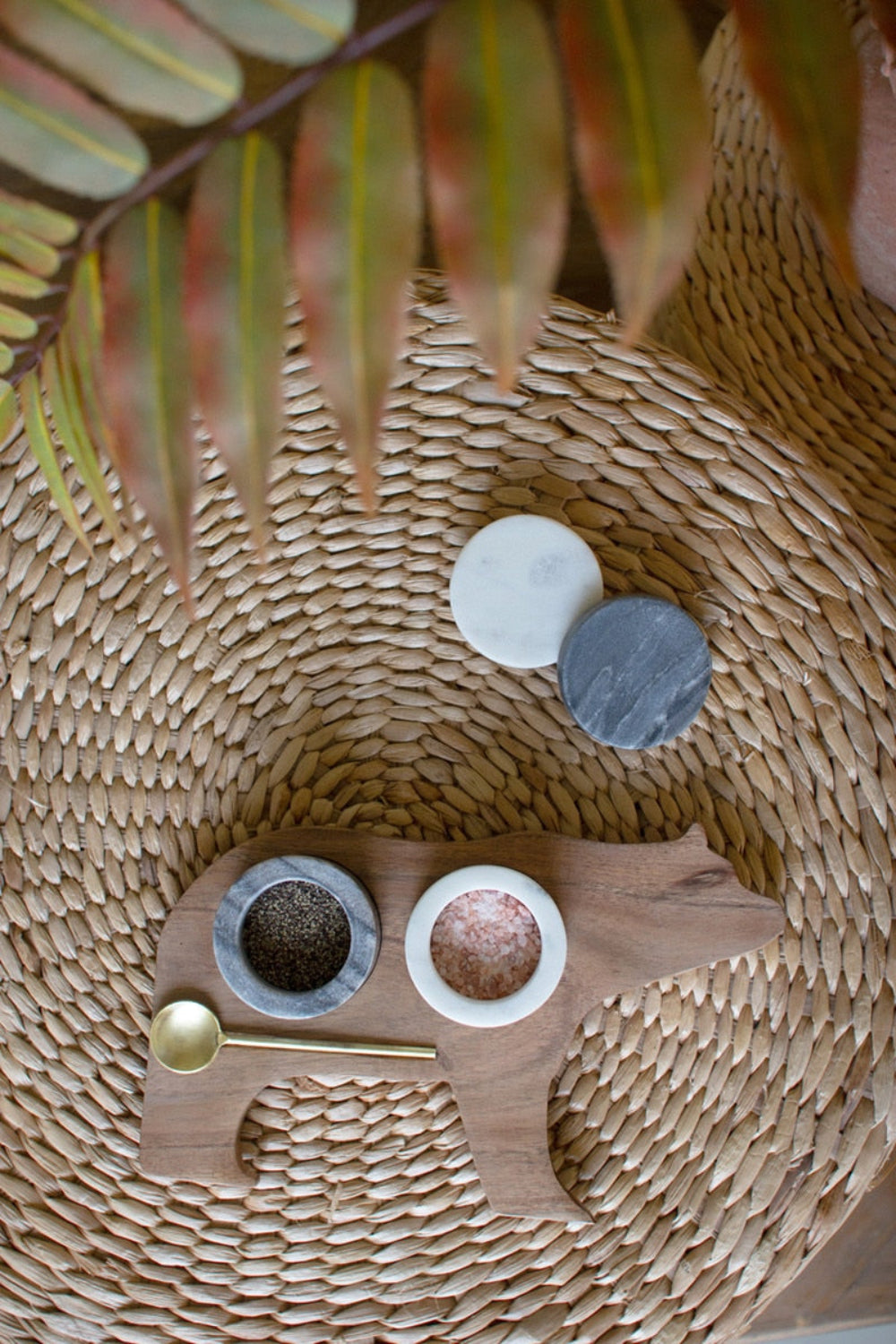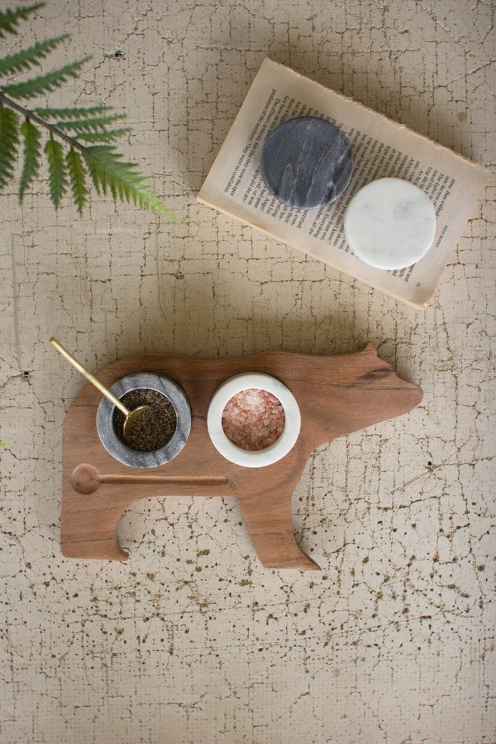 Wood and Marble Bear Salt and Pepper Cellars 2x Set of 4 – 9.5" Tall by Kalalou