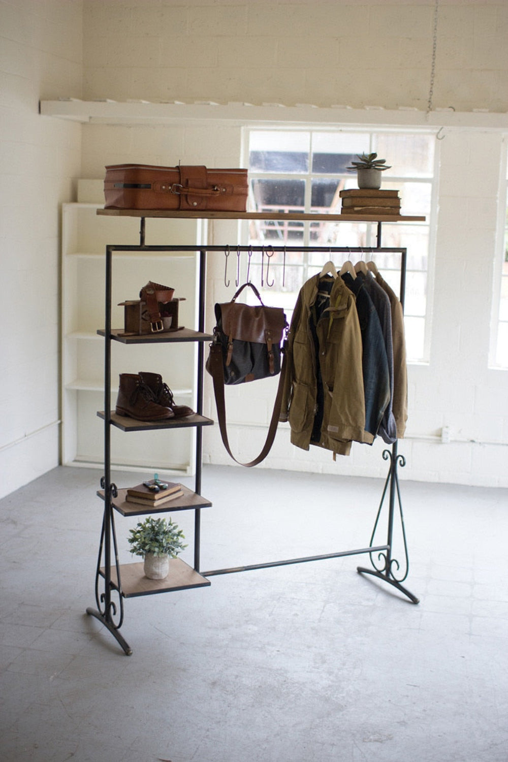 Wood and Metal Garment Display with Shelves – 72.5" Tall by Kalalou