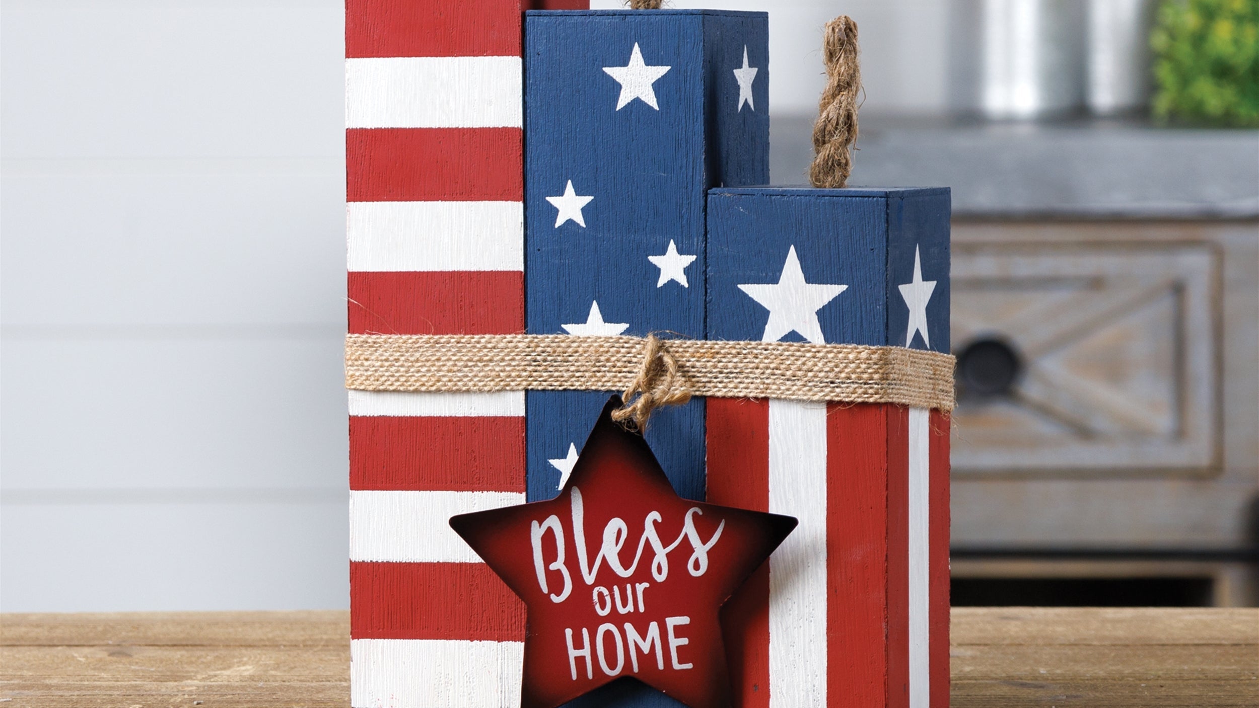 Add a touch of patriotic charm to your home with the Americana Firecracker Block Bundle. Crafted from durable wood, this decorative set features three rustic blocks finished in classic red, white, and blue, complete with a heartfelt message that brings warmth to seasonal displays. Measuring 8"L x 3"W x 14"H, it fits perfectly on mantels, shelves, or table centerpieces, making it ideal for Independence Day, Memorial Day, or year-round Americana decor. The sturdy wood design ensures long-lasting appeal, while its compact size provides effortless placement throughout your home. This versatile bundle adds a proud, celebratory touch to any patriotic setting.