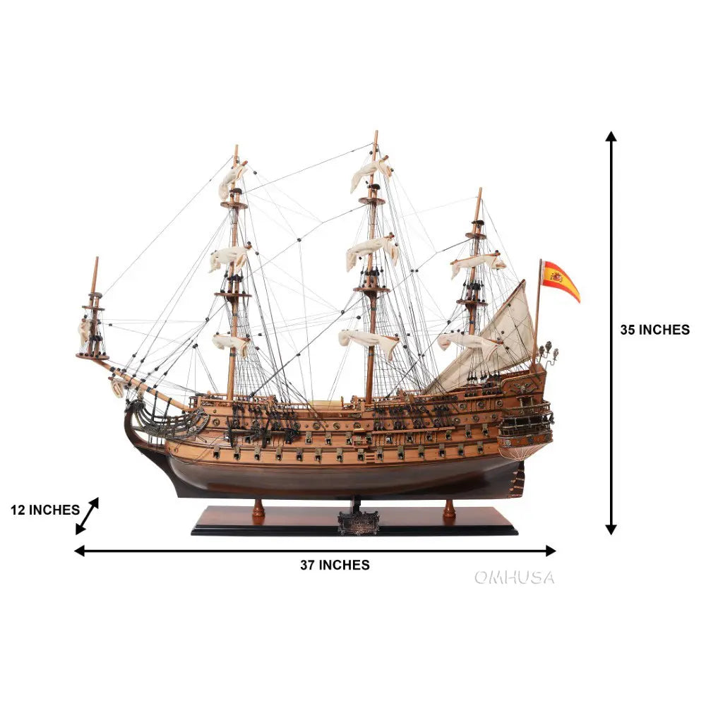 Wood San Felipe Model Ship 35"H – Handcrafted with Brass Details