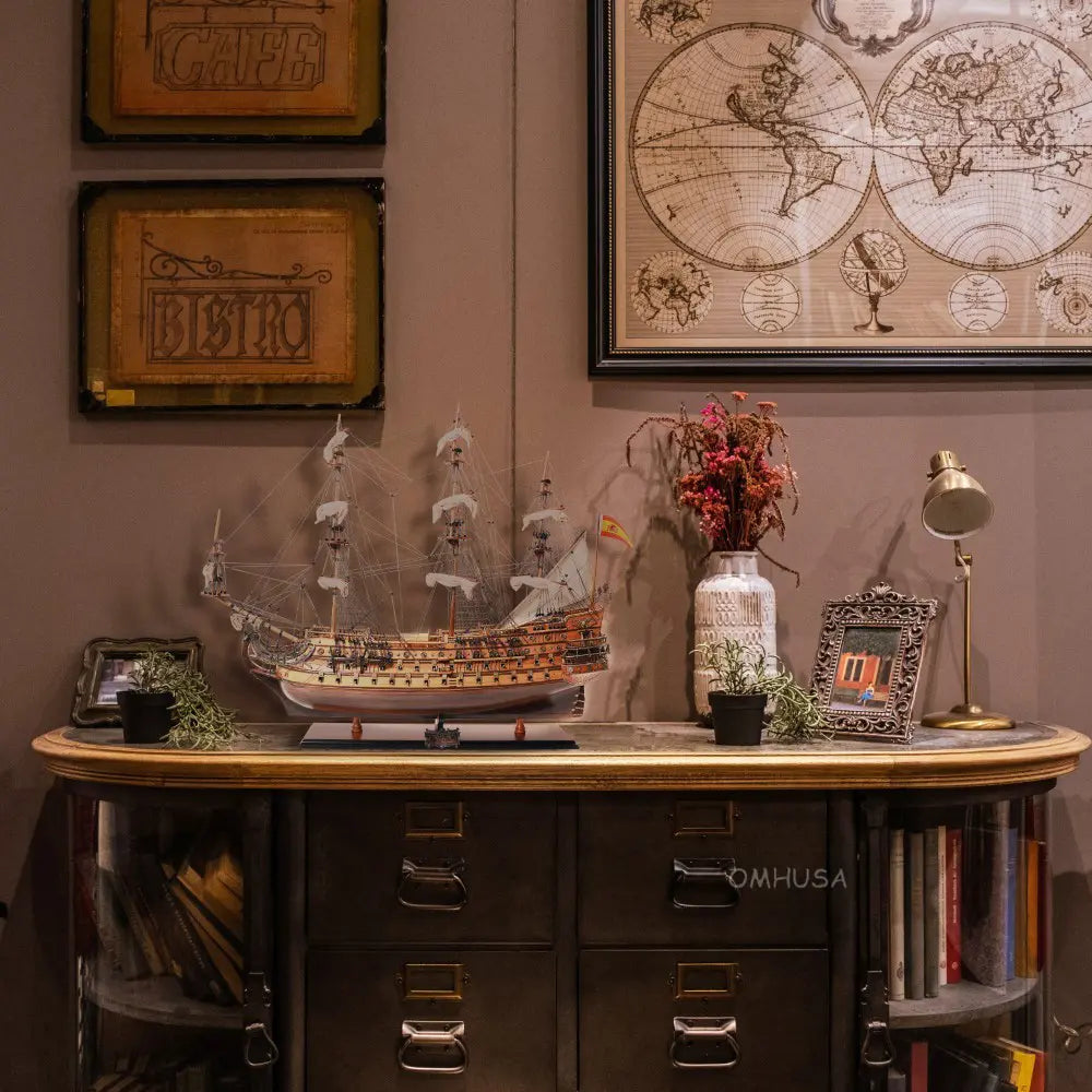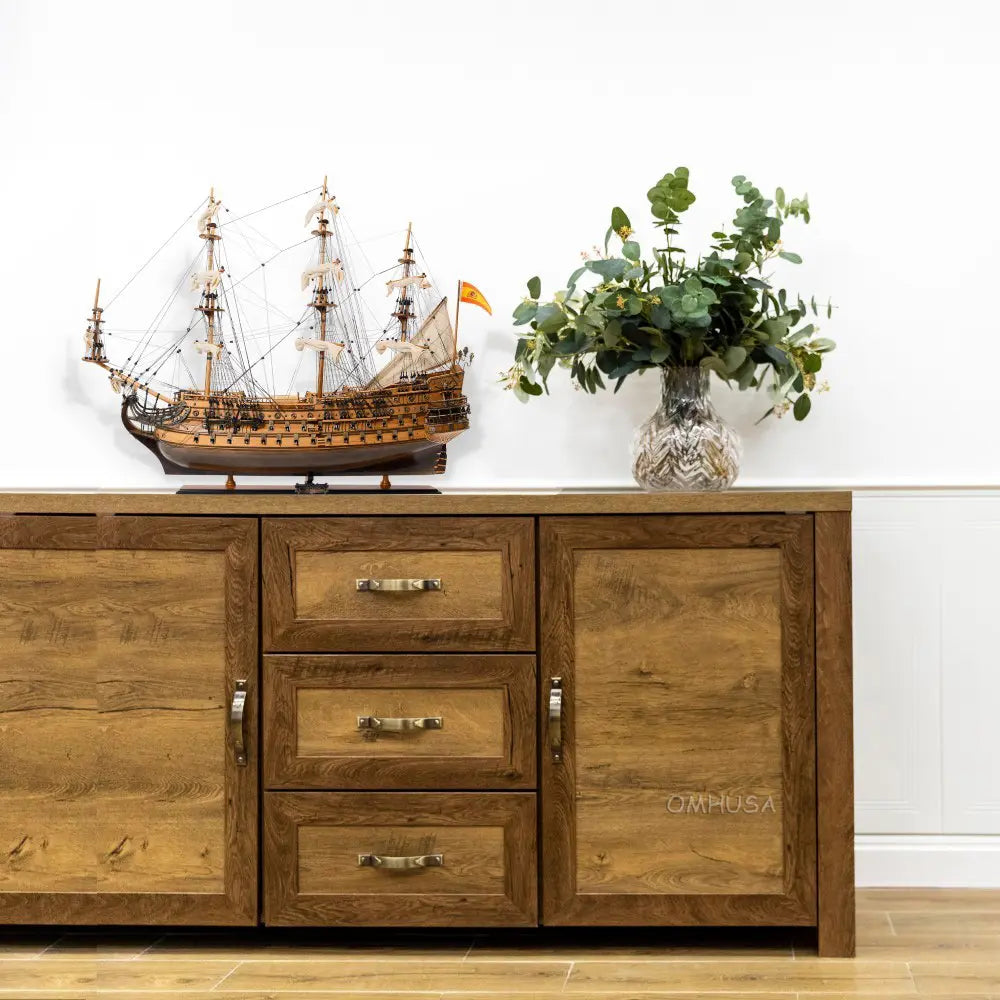 Wood San Felipe Model Ship 35"H – Handcrafted with Brass Details by Old Modern Handicrafts