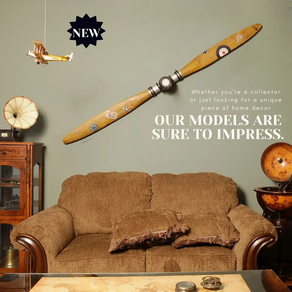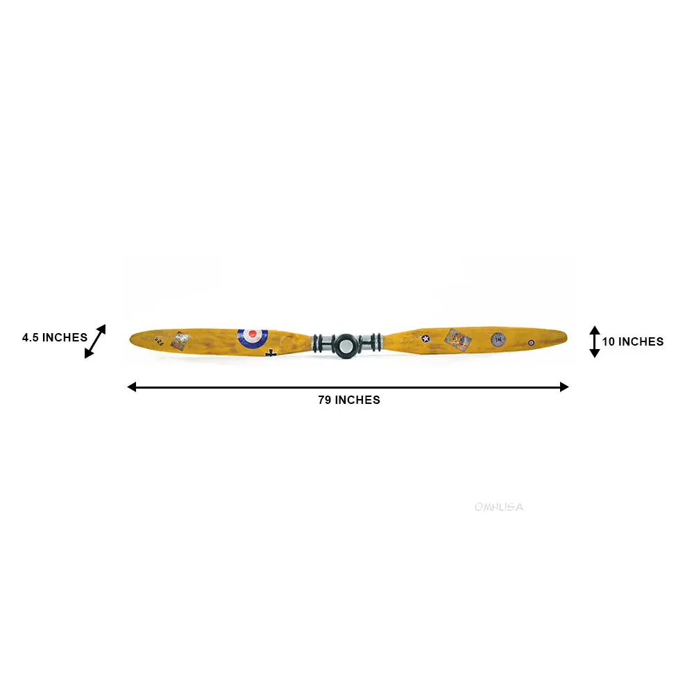 Capture the nostalgia of early aviation with this 10" H vintage-style airplane propeller, measuring approximately 79 inches in length. Crafted from solid wood and detailed with brass accents, this replica mirrors the design of original World War I aircraft propellers. Perfect for aviation enthusiasts, collectors, or themed interiors, it offers a bold and authentic statement piece. The intricate craftsmanship and historical inspiration make it ideal for display in offices, lounges, or home libraries. Whether mounted on the wall or leaned for rustic display, this timeless piece celebrates the golden age of flight and adds character to any space.