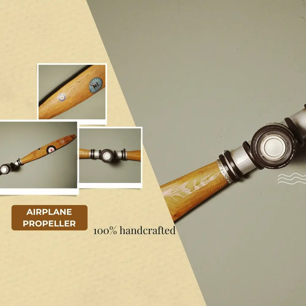 Wooden Airplane Propeller 10" H – Brass Accents – Vintage WWI Style By Old Modern Handicrafts