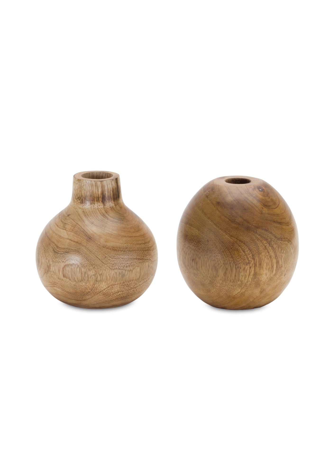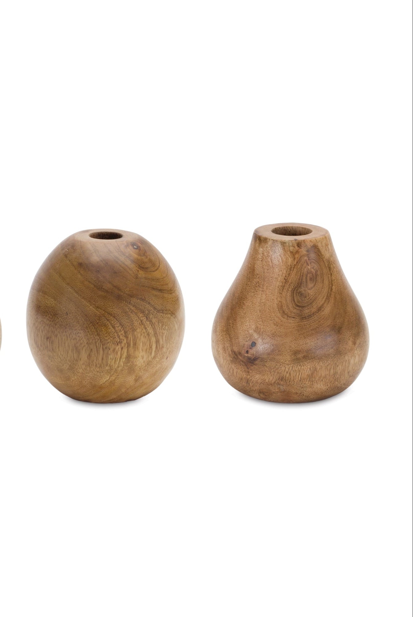 SKU - MEL-88144DSWooden Bud Vase Collection Set of 3 5"H Natural Grain Decorative Pieces