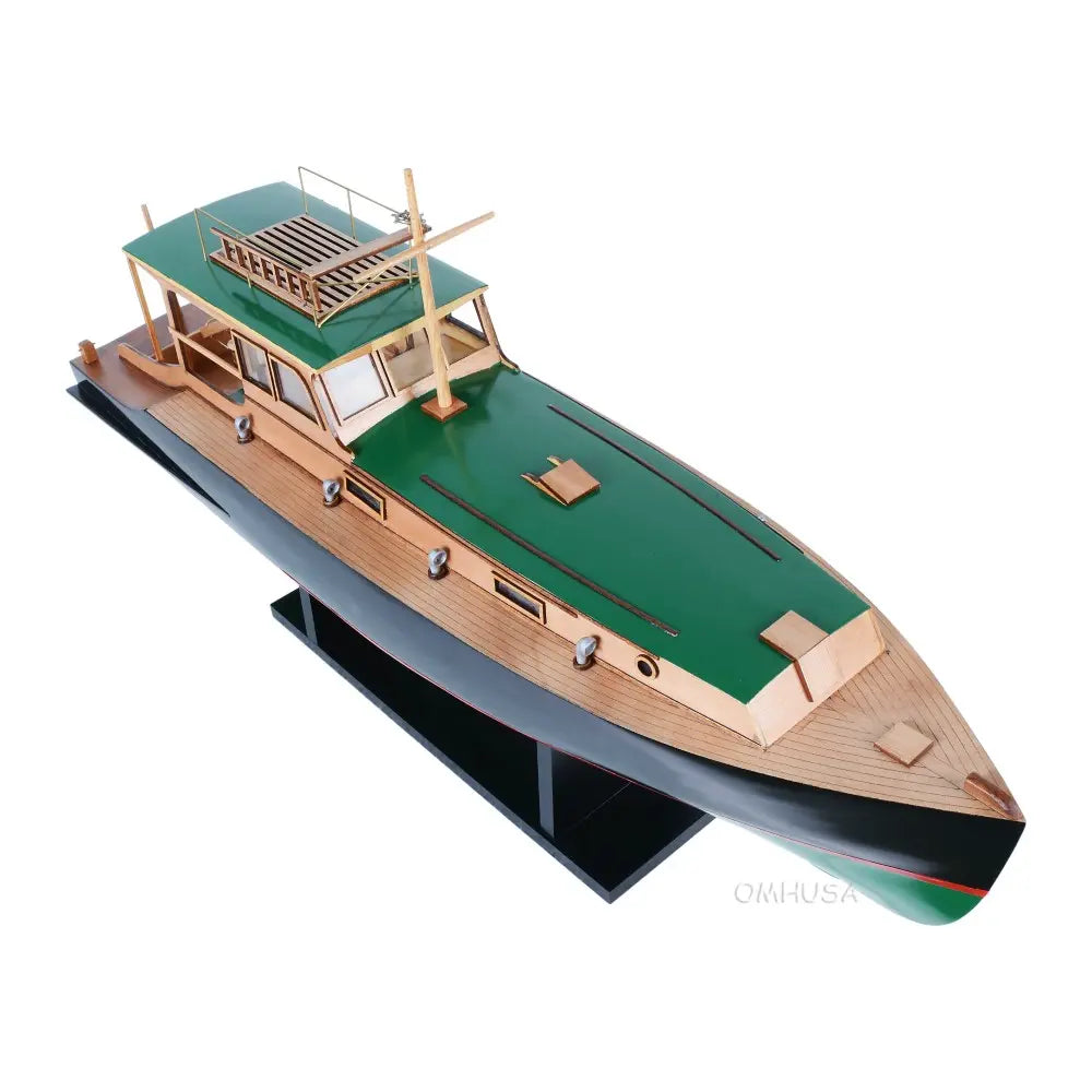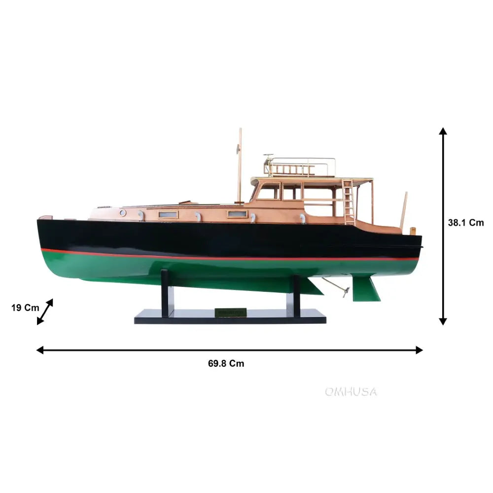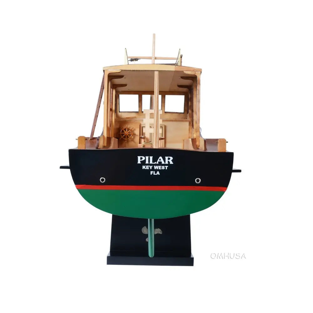Wooden Hemingway Pilar Fishing Boat Model - 27.5" Handcrafted Replica with Chair & Steering Wheel By Old Modern Handicrafts