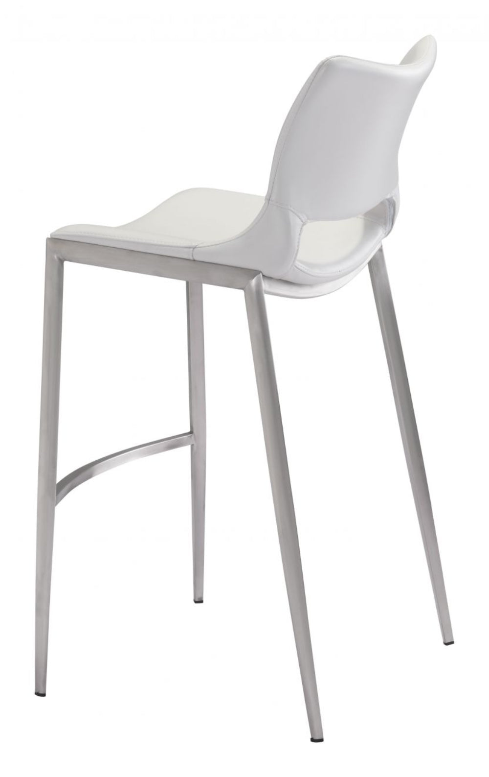 Zuo Modern Ace Barstool Set of 2, 40.9" H, White Faux Leather, Silver Brushed Stainless Steel, Modern Ergonomic Design