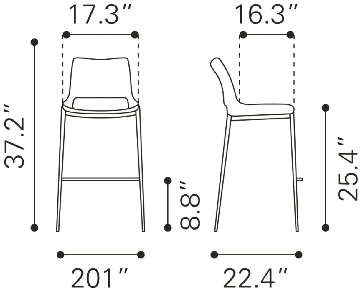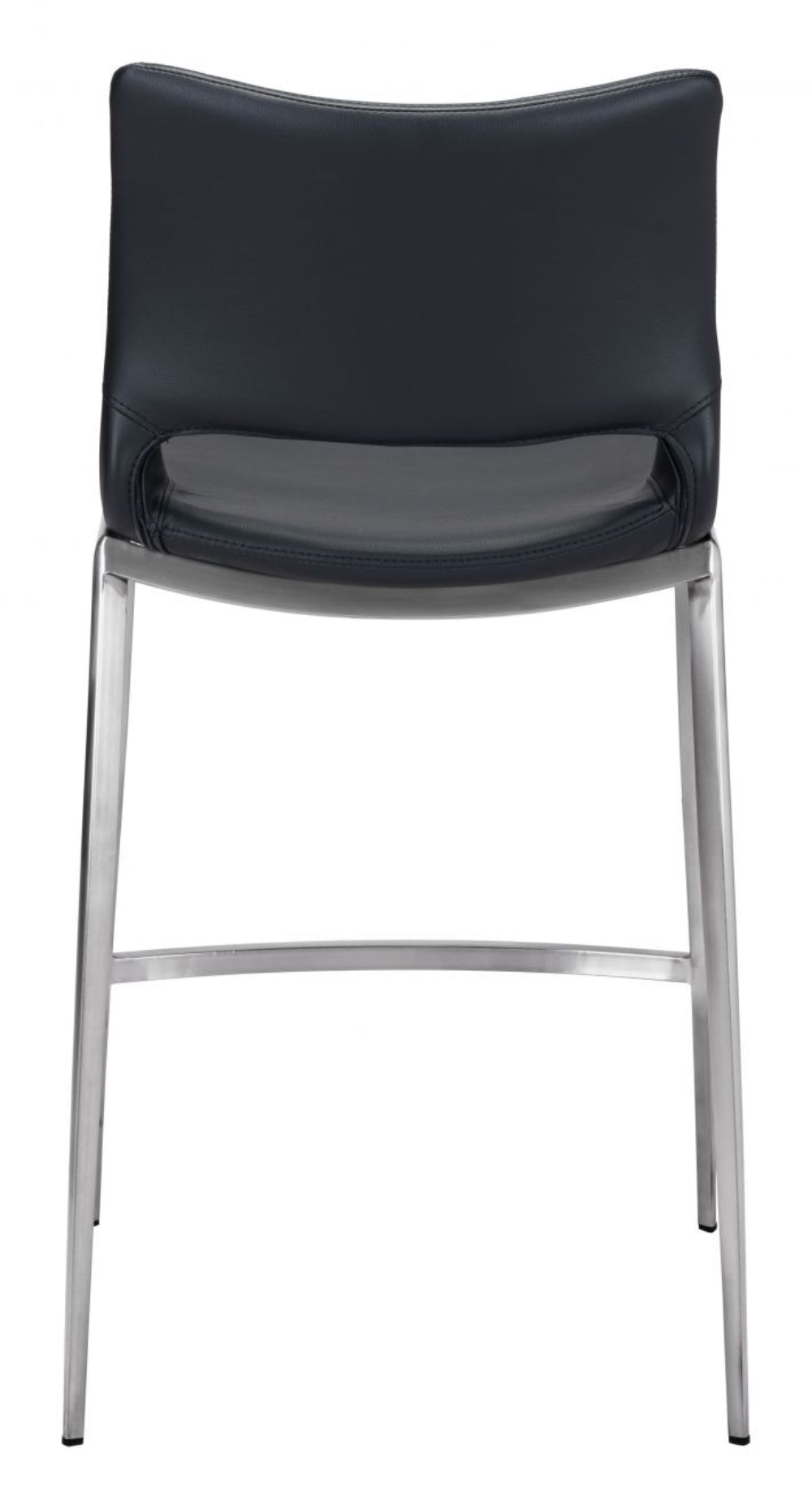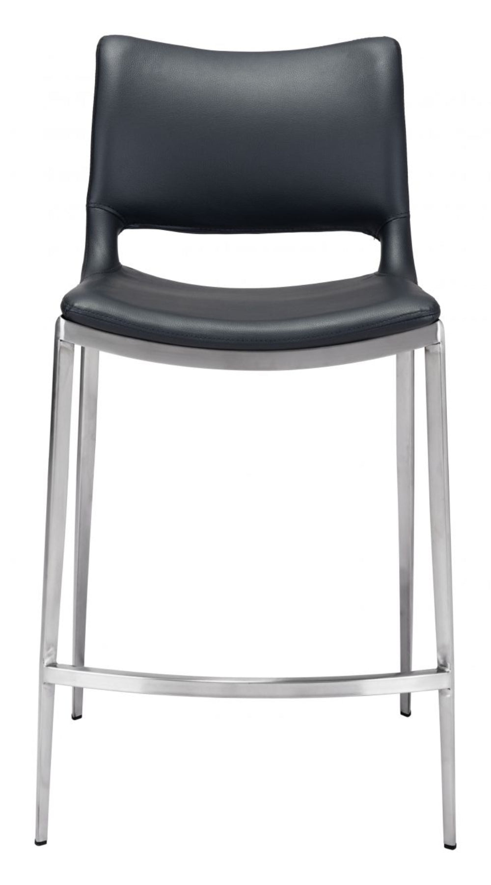 Zuo Modern Ace Counter Stool Set of 2, 37.2" H, Black Faux Leather, Brushed Stainless Steel Frame, Modern Design