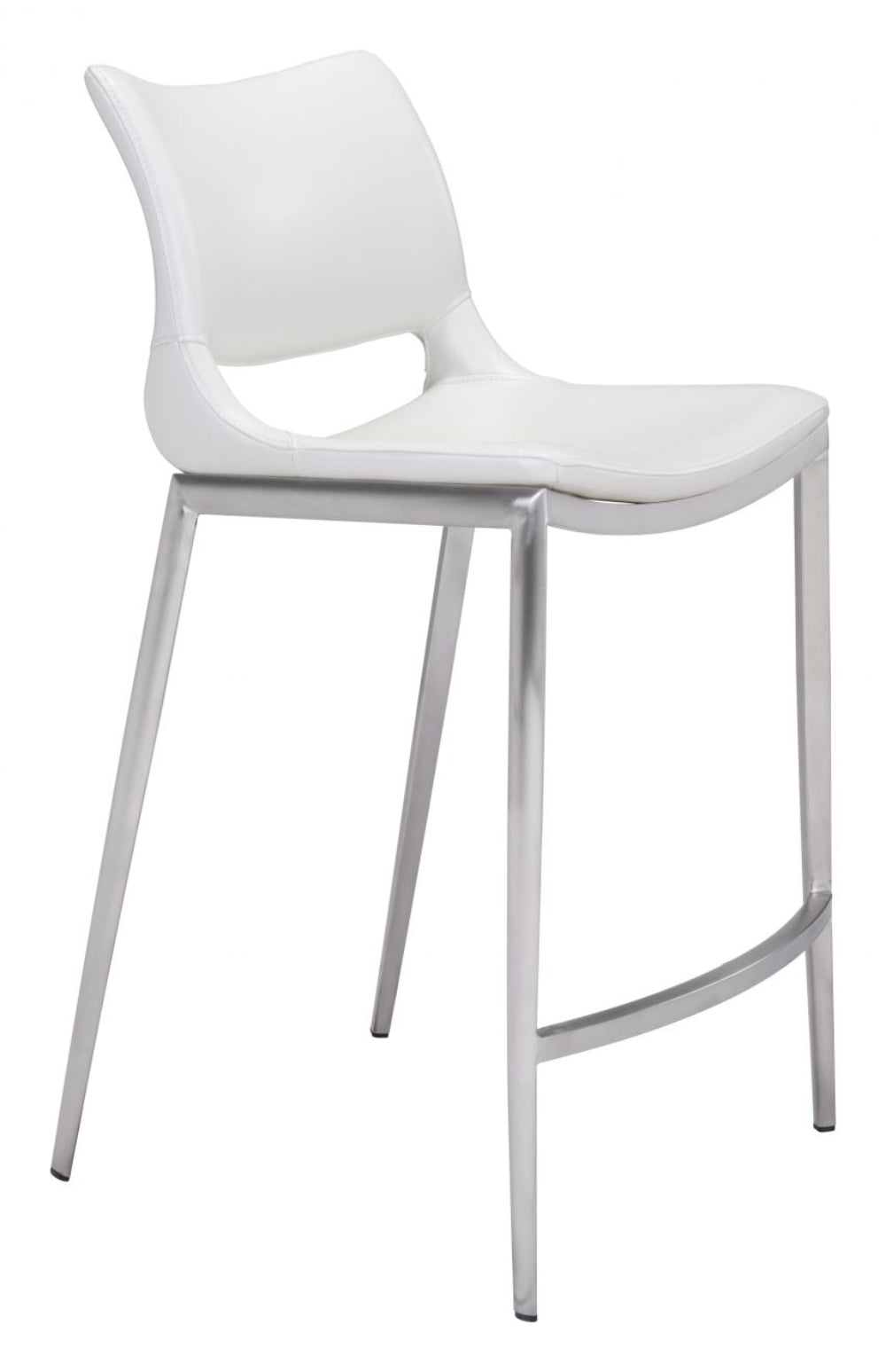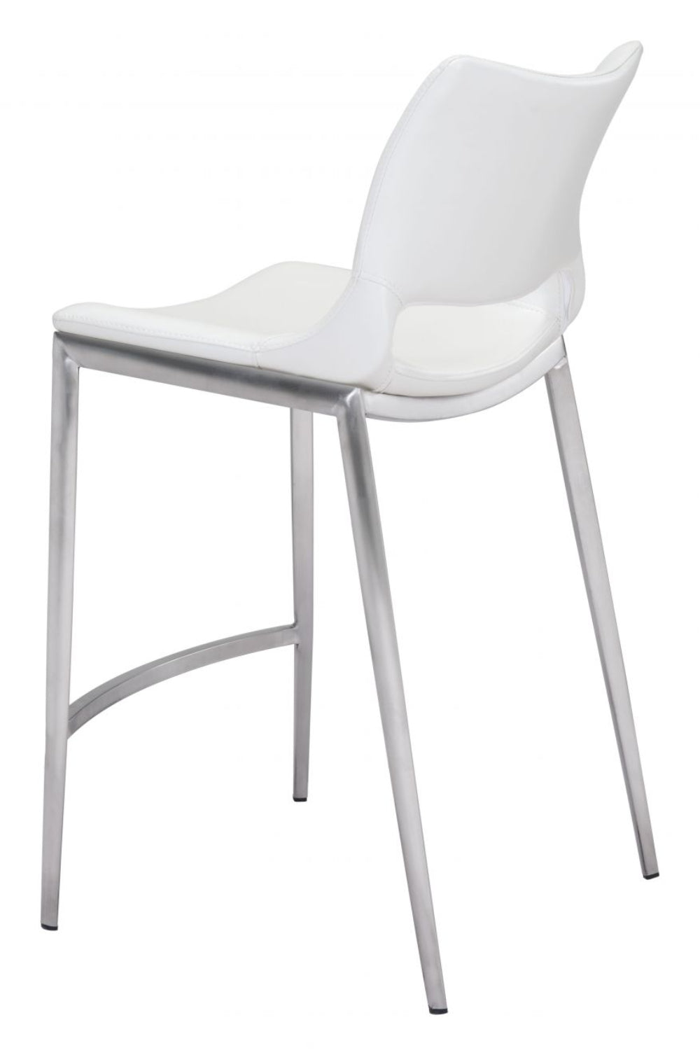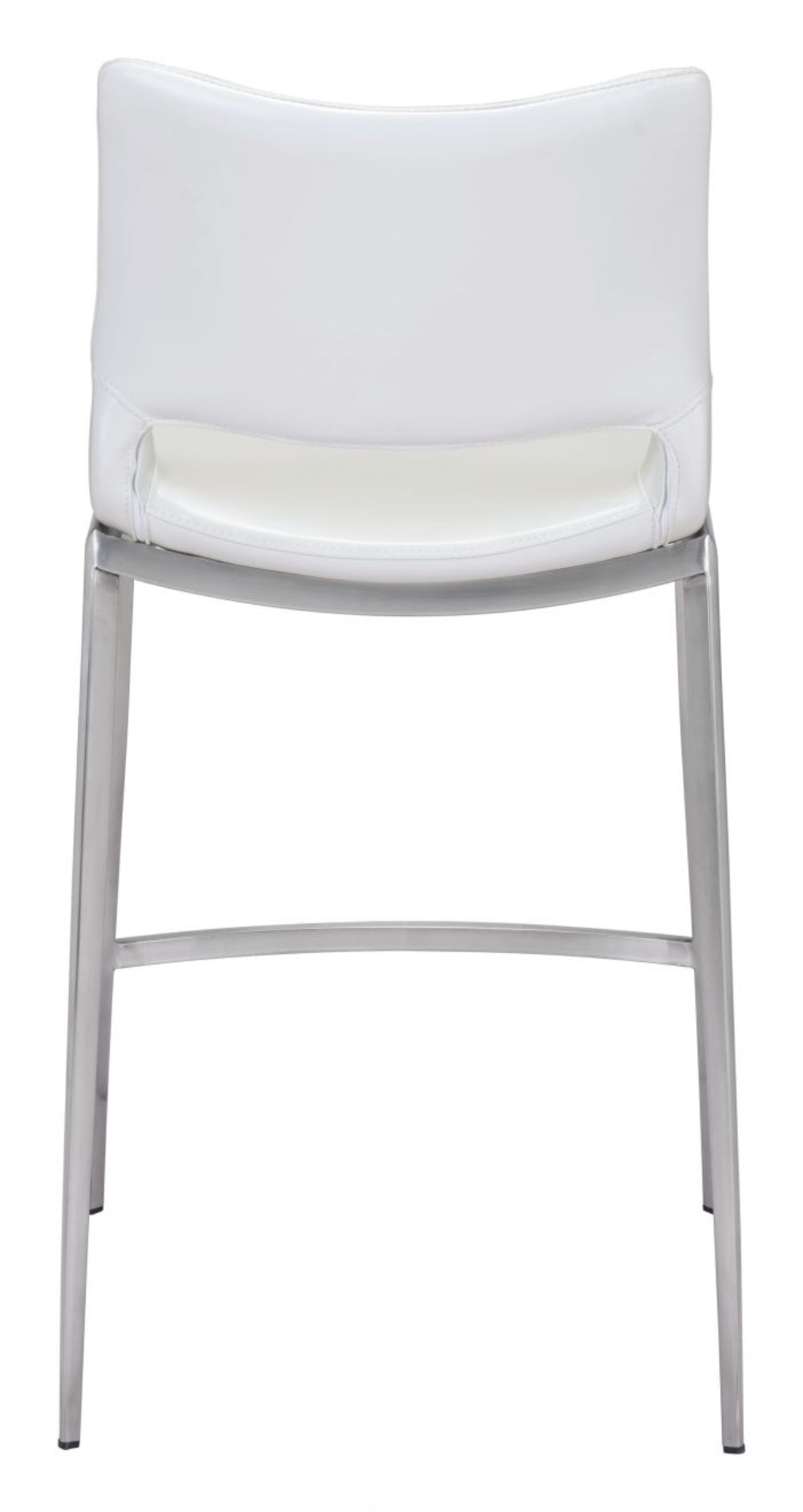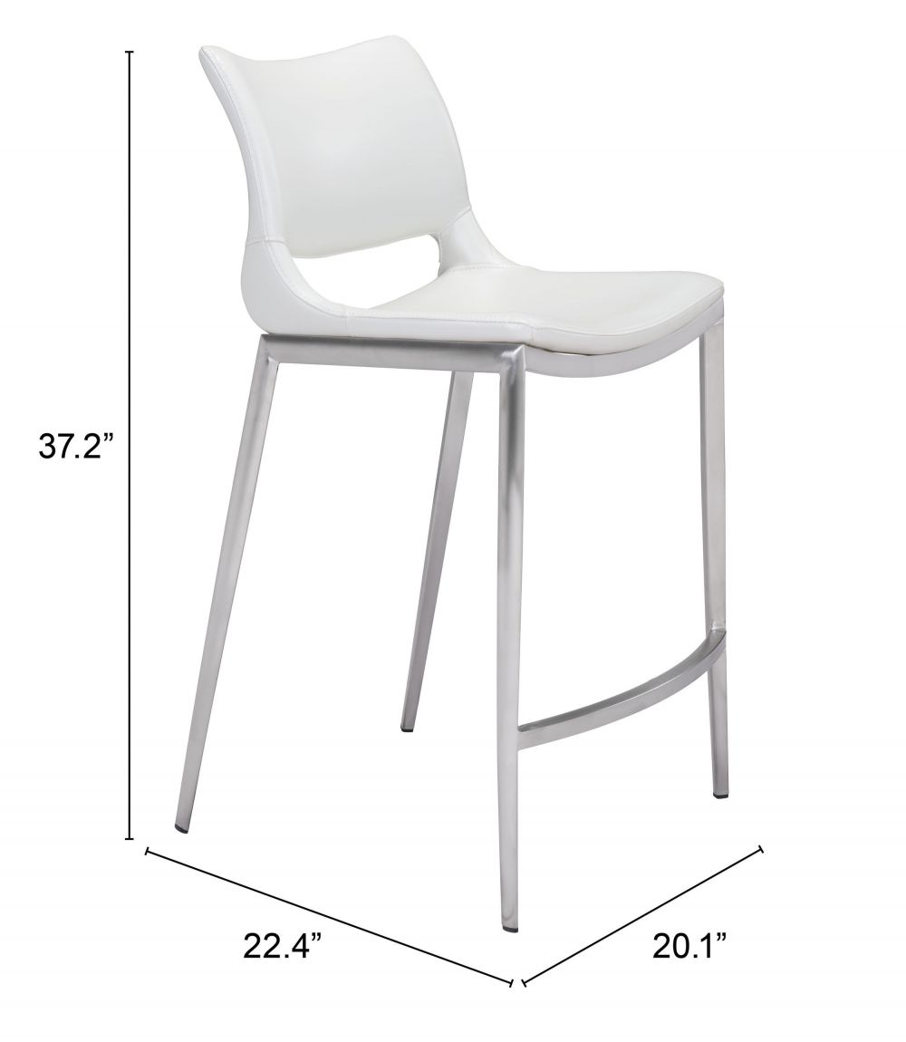 Zuo Modern Ace Counter Stool Set of 2, 37.2" H, White Faux Leather, Brushed Stainless Steel Frame, Modern Design