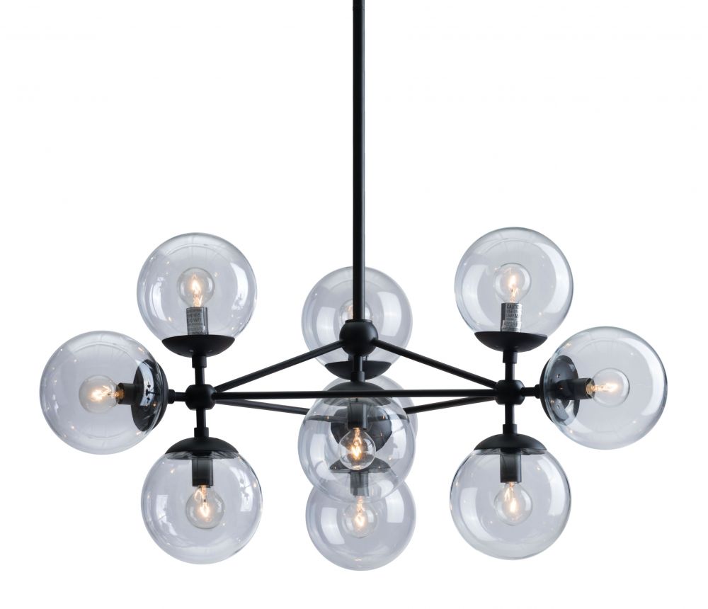 SKU - ZUO-56065Belfast Ceiling Lamp Black with 10 Glass Globes 61.8"H x 29.9"W x 29.9"D