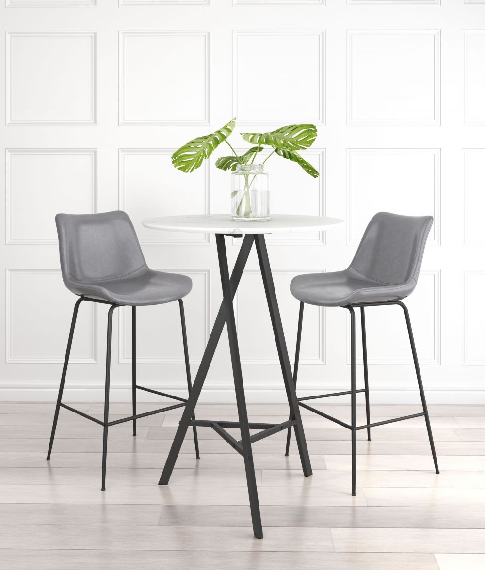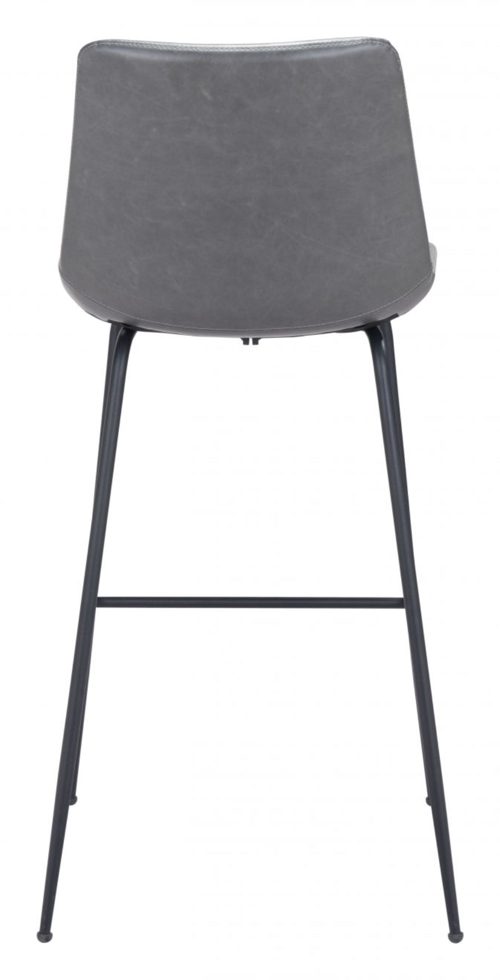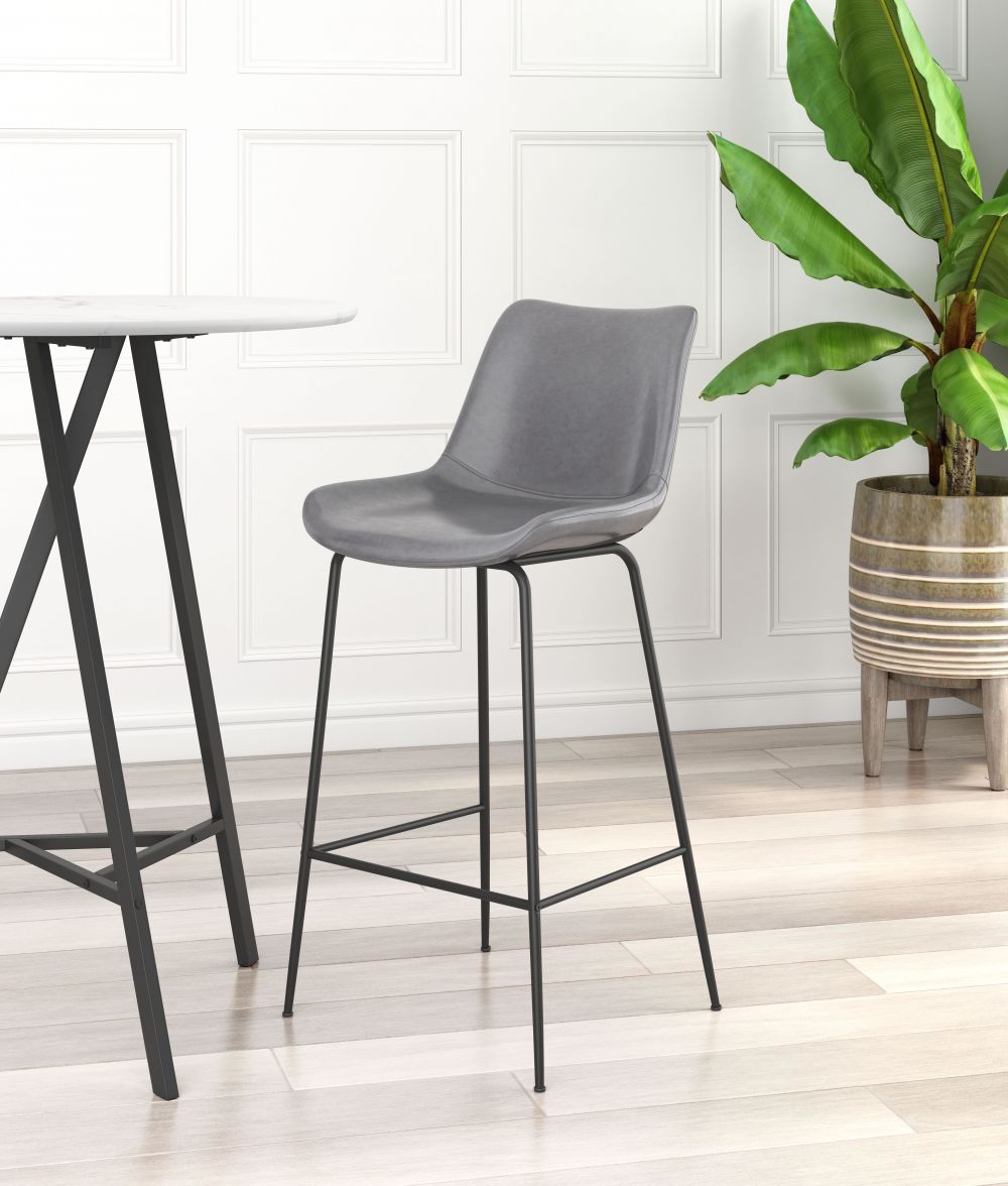 Zuo Modern Byron Barstool – Gray Faux Leather, Matte Black Steel Frame – 43.1” Height – Mid-Century Modern Design