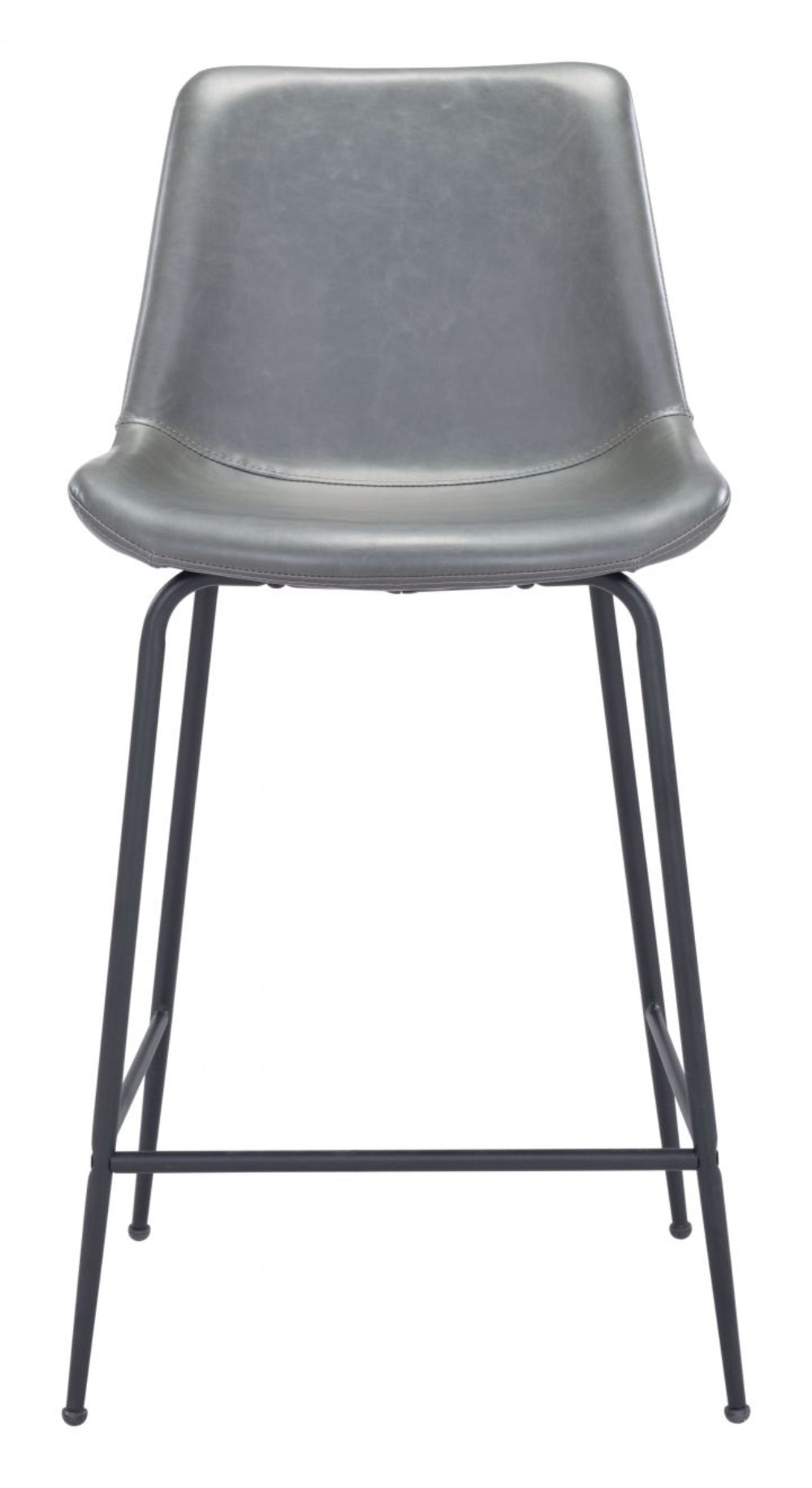 Bring a sleek mid-century vibe to your kitchen, bar, or dining area with the Zuo Modern Byron Counter Stool. Upholstered in durable gray faux leather (100% polyurethane) and supported by a powder-coated black steel frame, it blends modern aesthetics with lasting performance. The ergonomic seat sits at a 26.4-inch height, supported by a contoured design and integrated footrest for all-day comfort. Measuring 20.1"W × 22.2"D × 38.6"H, this stool is ideal for residential or hospitality use. Assembly is required and rubber feet are included to prevent floor scratches.
