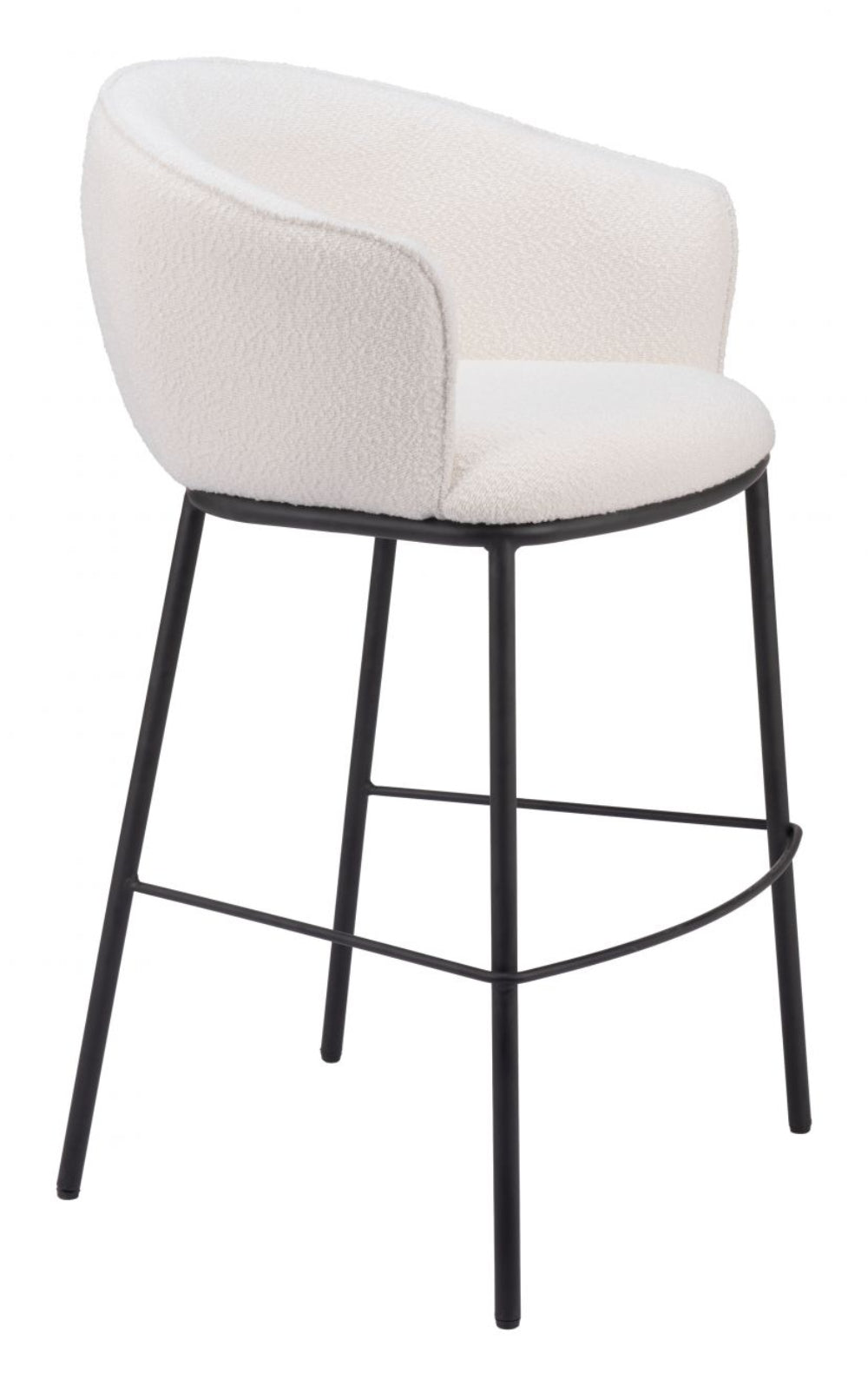 Zuo Modern Essen Barstool 36.6"H, Ivory Upholstered Teddy Fabric with Black Steel Frame