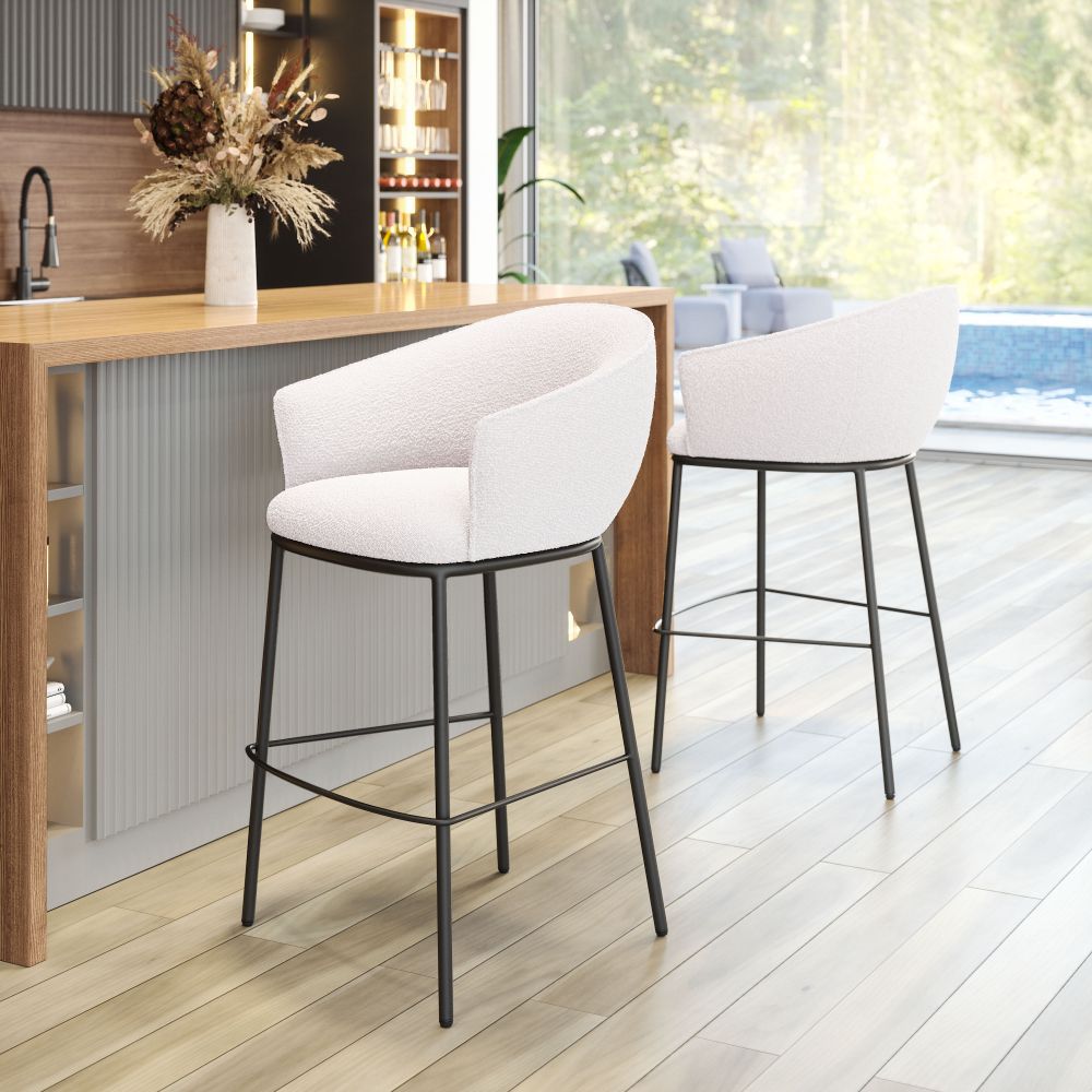 Elevate your bar or kitchen seating with the Zuo Modern Essen Barstool. Wrapped in plush ivory teddy fabric, it combines luxurious comfort with sleek black steel framing for a contemporary look.
