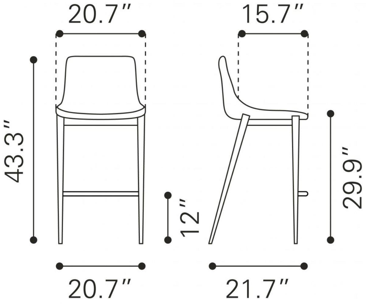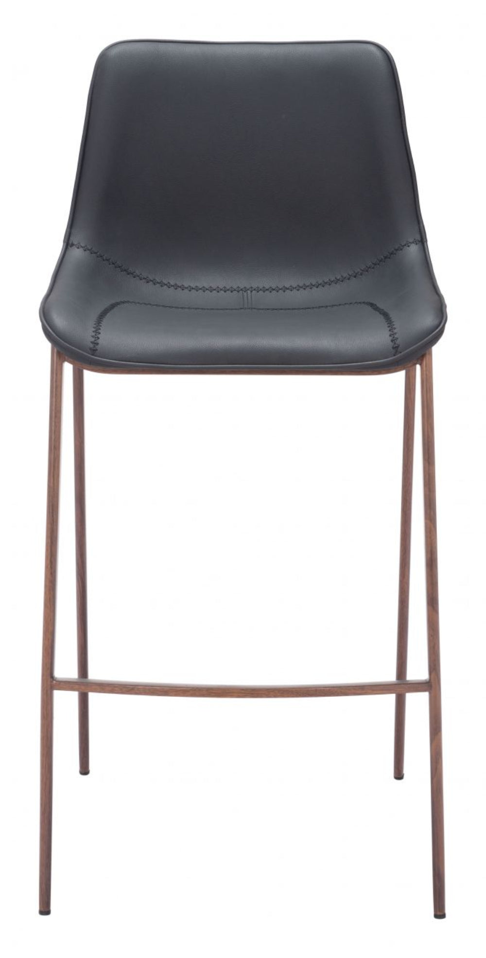 SKU - ZUO-109937Magnus Barstool,43.3" H Black and Walnut Faux Leather Ergonomic Counter Stool,Set of 2