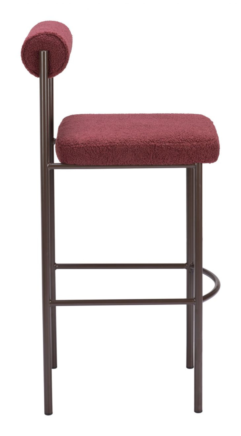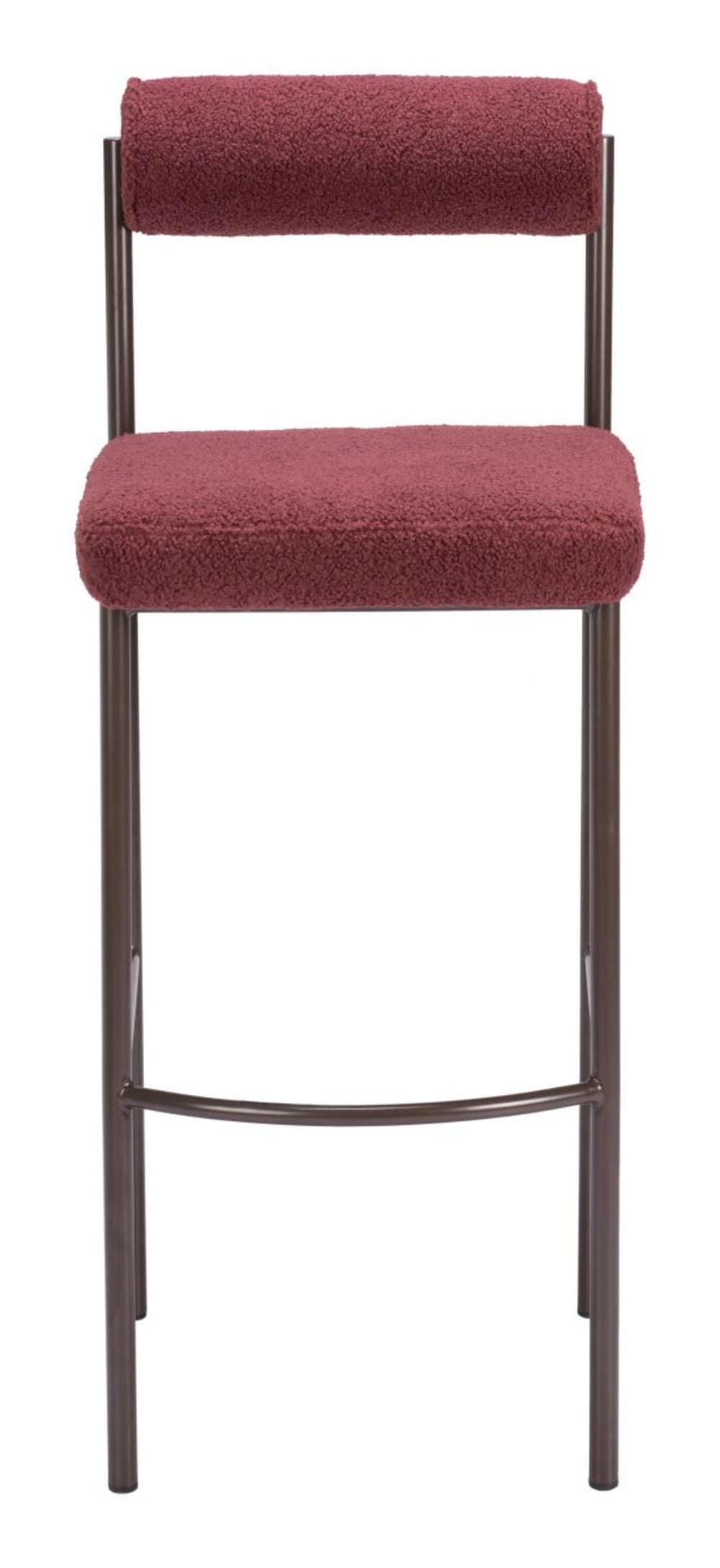 Zuo Modern Livorno Barstool 40.2"H, Red and Bronze Shearling Fabric Steel Contemporary,Set of 2