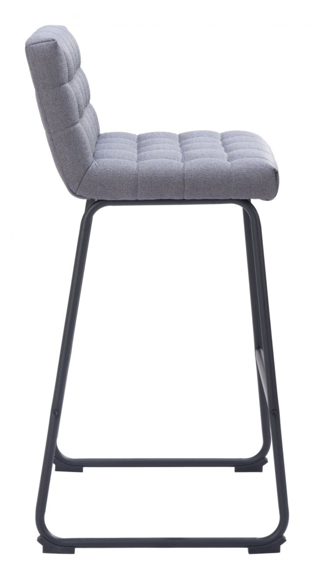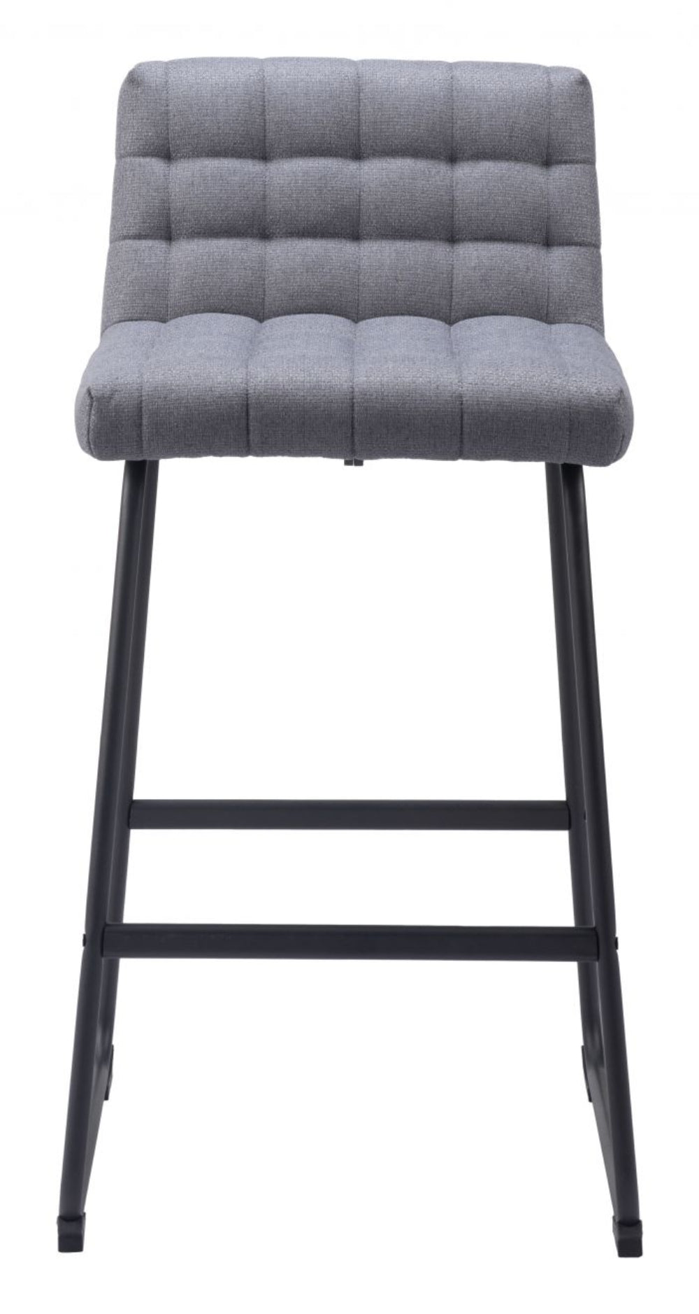 Zuo Modern Pago 39'' Gray Upholstered Barstool Set of 2, Polyester Seat with Black Steel Frame, Modern Home Bar Seating