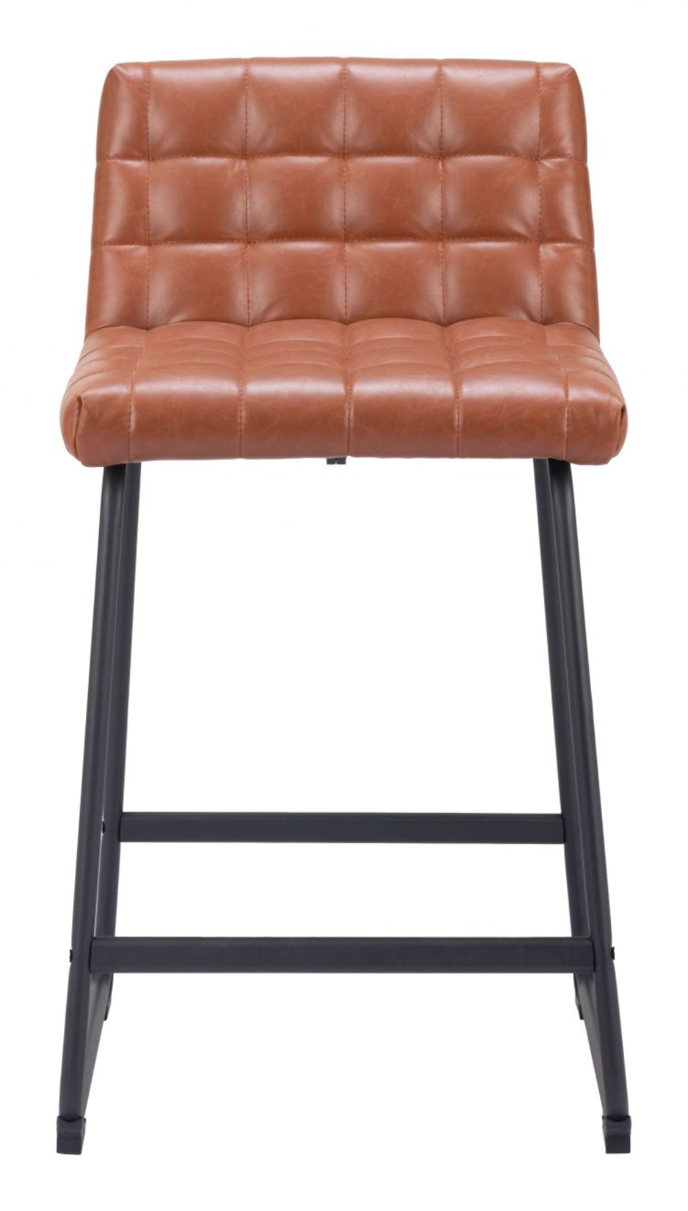 Zuo Modern – Pago Counter Stool Set of 2, 35" Brown Faux Leather with Steel Frame, Modern Art Deco