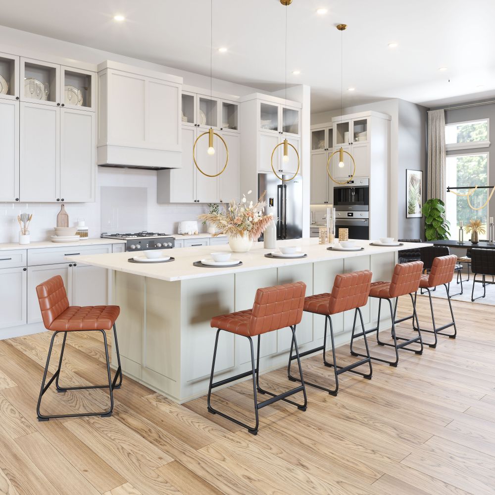 Zuo Modern – Pago Modern Counter Stools Set of 2, 35" Brown Faux Leather Seat with Durable Steel