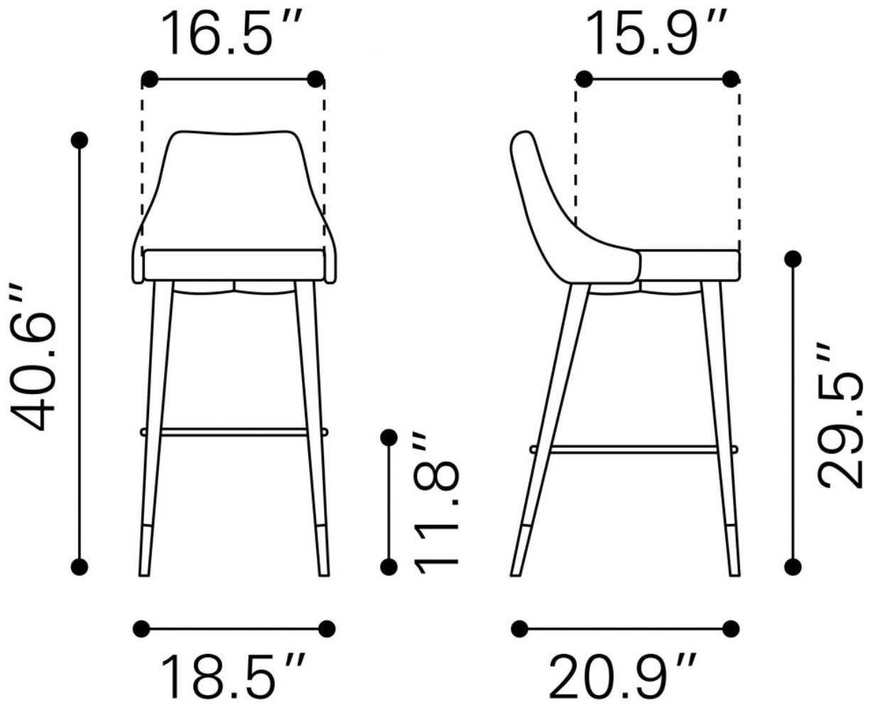 - Compact & Chic: Sleek 18.5" W x 20.9" D x 40.6" H design fits most counters and bars.