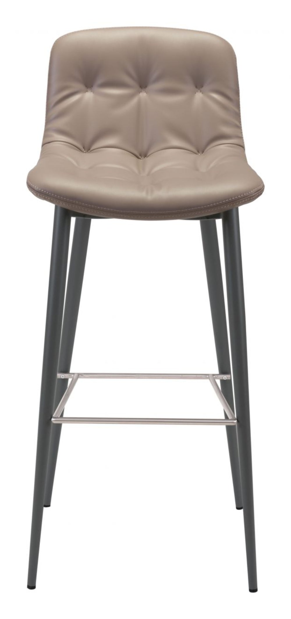 Zuo Modern – Tangiers Barstool Set of 2, 40.2"H, Taupe Tufted Faux Leather Seat with Chromed Steel Legs, Modern Kitchen and Bar Seating