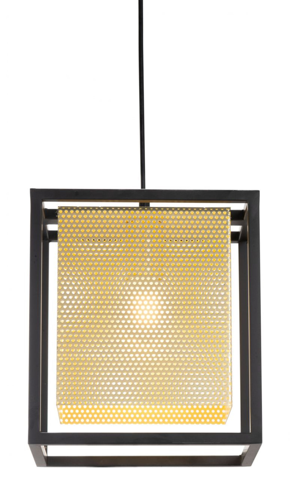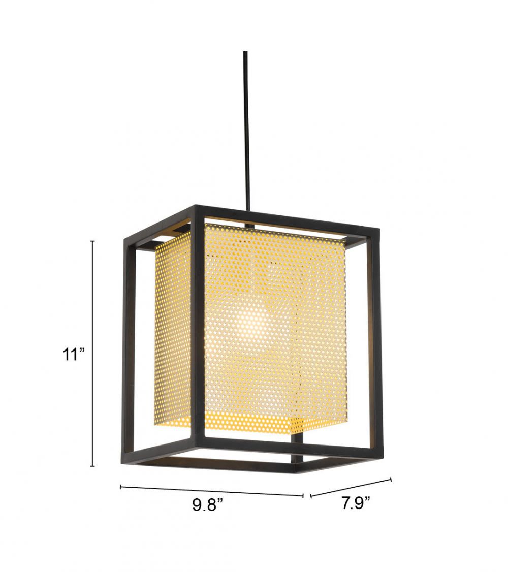 Add architectural charm and modern flair to your space with the Zuo Modern Yves Ceiling Lamp. Standing tall at 131.5 inches, this striking ceiling fixture features a sleek steel frame in a contrasting gold and black finish. The perforated shade delivers a soft glow, casting ambient light that enhances any contemporary or hospitality setting.